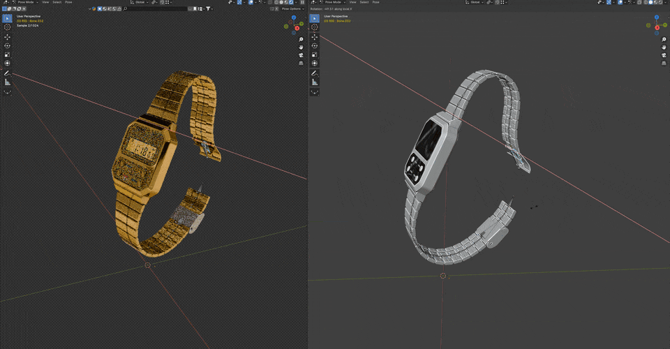 The Casio A100WE holds a special place in my heart as one of my favorite watches. Inspired by its retro design and timeless appeal, I embarked on a passion project to recreate the watch digitally, bringing it to life through 3D modeling, texturing, rigging, and animation.